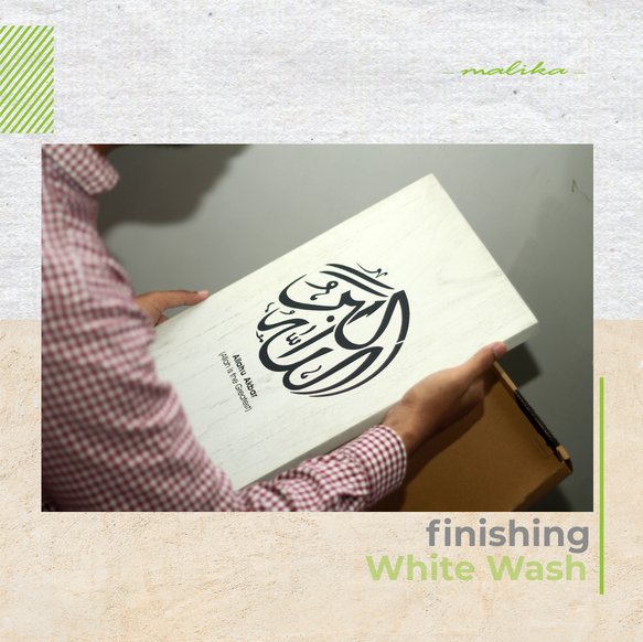 Selain dua di atas, solid wood finishing white merupakan warna yang ada di Malika Wallart. Warna putih mendominasi hiasan kayu yang dibuat melalui cat warna yang berwarna putih. Warna putih merupakan warna yang tidak kalah populer terutama bagi customer yang menyukai desain rumah minimalis. Warna putih menciptakan nilai minimalis, bersih dan simple. Sehingga selain kedua warna di atas, warna ini menjadi pilihan bagi sejumlah orang. Selain itu, di samping tipe minimalis, warna putih juga identic dengan warna vintage.