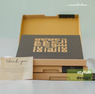 Pada pengemasan produk, Malika menggunakan kardus dengan ukuran yang telah disesuaikan dengan besar produk yang dipesan. Selain itu, Malika menggunakan plastik untuk memastikan bahwa barang tidak akan kotor dan tidak akan rusak apabila terkena air. Sedangkan kardus digunakan agar barang tidak akan terbentur maupun tergores sesuatu.