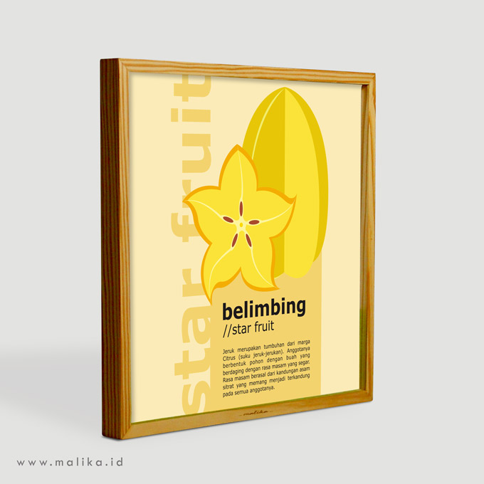 Infografis Buah Belimbing printing yang dicetak pada media photo paper laminasi doff berdimensi 30×30 cm, dengan frame yang berbahan kayu jati belanda pilihan.